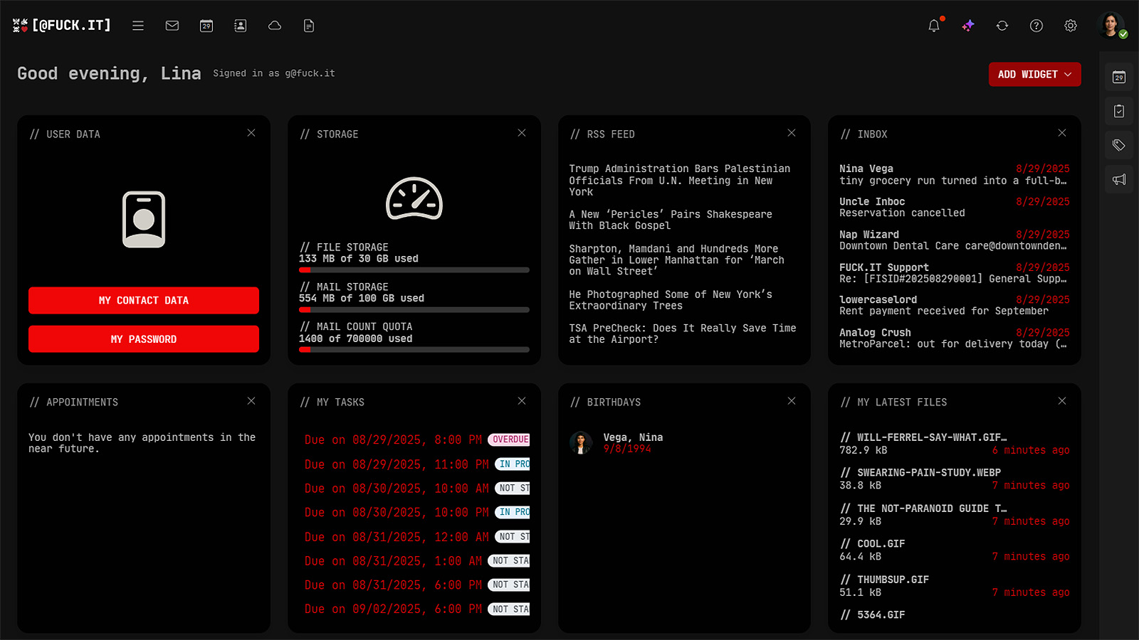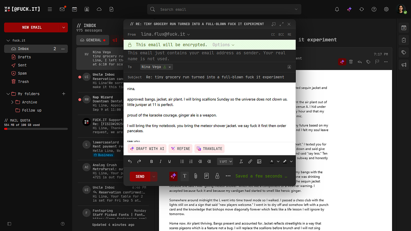 Email with attitude meets press on deadline. Grab logos, screenshots and press releases to tell the [@fuck.it] story. These resources help you use our brand and assets, including our logo, content and trademarks, without a separate legal agreement.